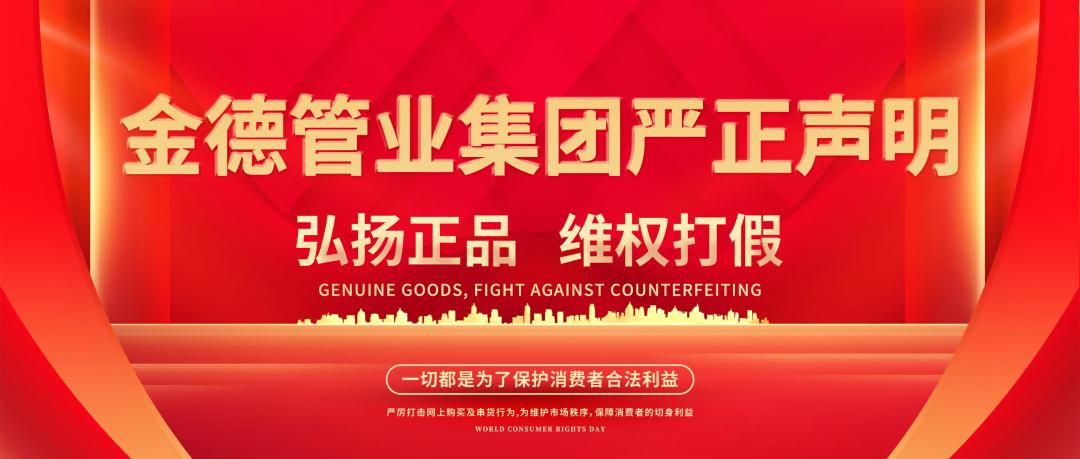 嚴正聲明:金德管業(yè)集團旗下所有產(chǎn)品在線上銷售屬違法行為! 嚴正聲明:金德管業(yè)集團旗下品牌產(chǎn)品線上銷售屬違法侵權(quán)行為! 1280 瀏覽 金德管業(yè)集團 2023-10-02