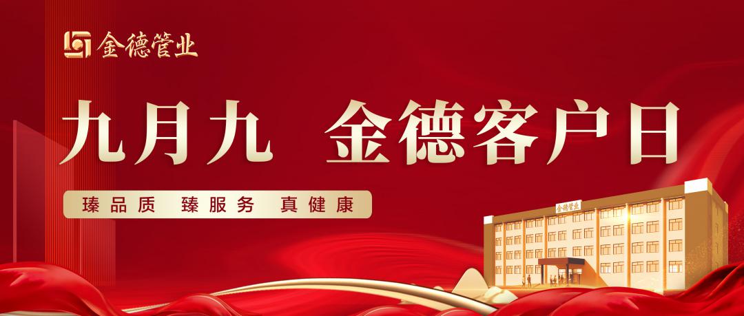 2023-10-02 金德管業集團 3217金德管業集團首屆“九月九客戶日”將于2023年9月9日與廣大客戶相約!本次活動,我們將帶來豐盛的福利回饋,提供高品質客戶福利,搭建開放的互動橋梁,持續擦亮金德管業“瑧品質 臻服務 真健康”品牌形象。